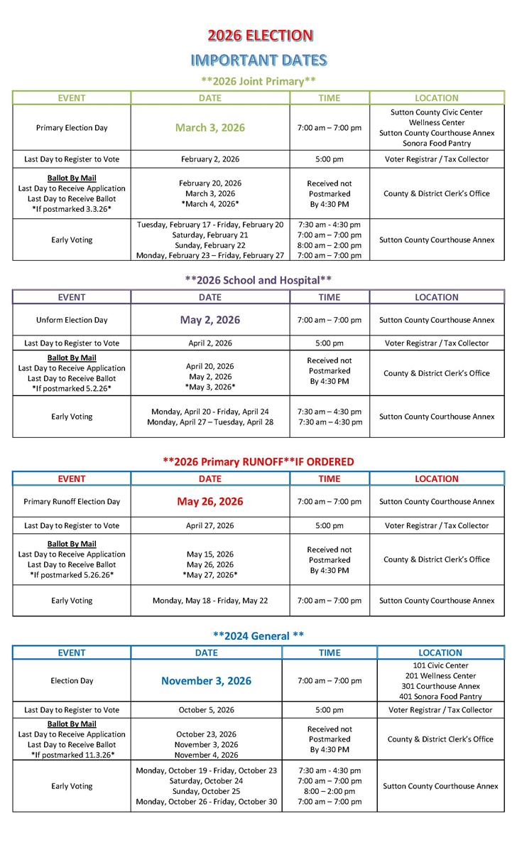 You may contact the County Clerk's office for an application to vote by mail at 325-387-3815
